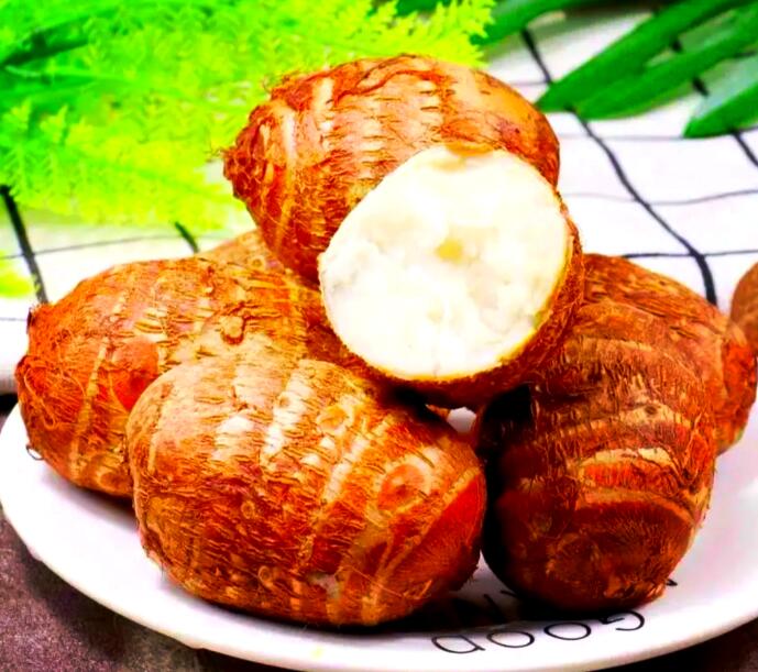 芋头富含淀粉,营养丰富。每100克鲜品中含有热量91卡,蛋白质2.4克,脂肪0.2克,碳水化合物20.5克,钙14毫克,磷43毫克,铁0.5毫克,维生素C10毫克,维生素B10.09毫克,维生素B20.04毫克。