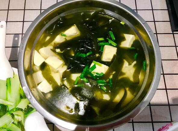 主料:嫩豆腐1块、海带结100g、白蘑菇50g